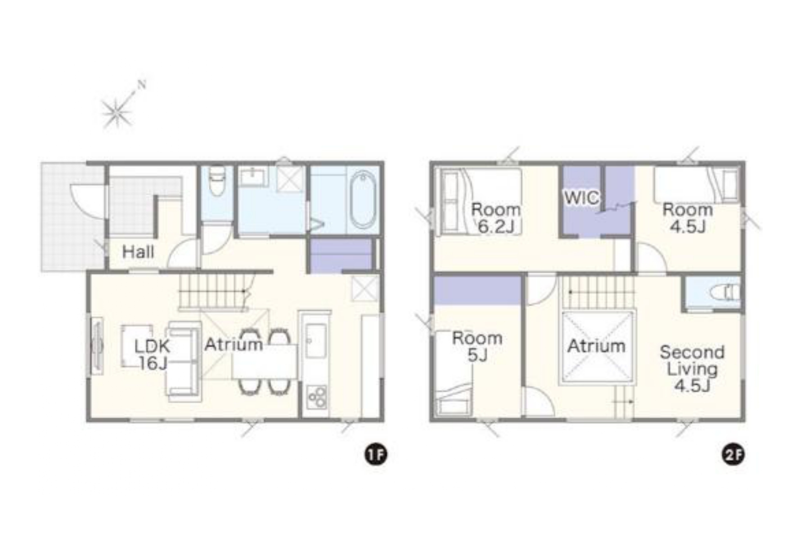 | 間取内訳 | 1階:LDK16帖 2階:洋室6.2帖 洋室5帖 洋室4.5帖 | ||