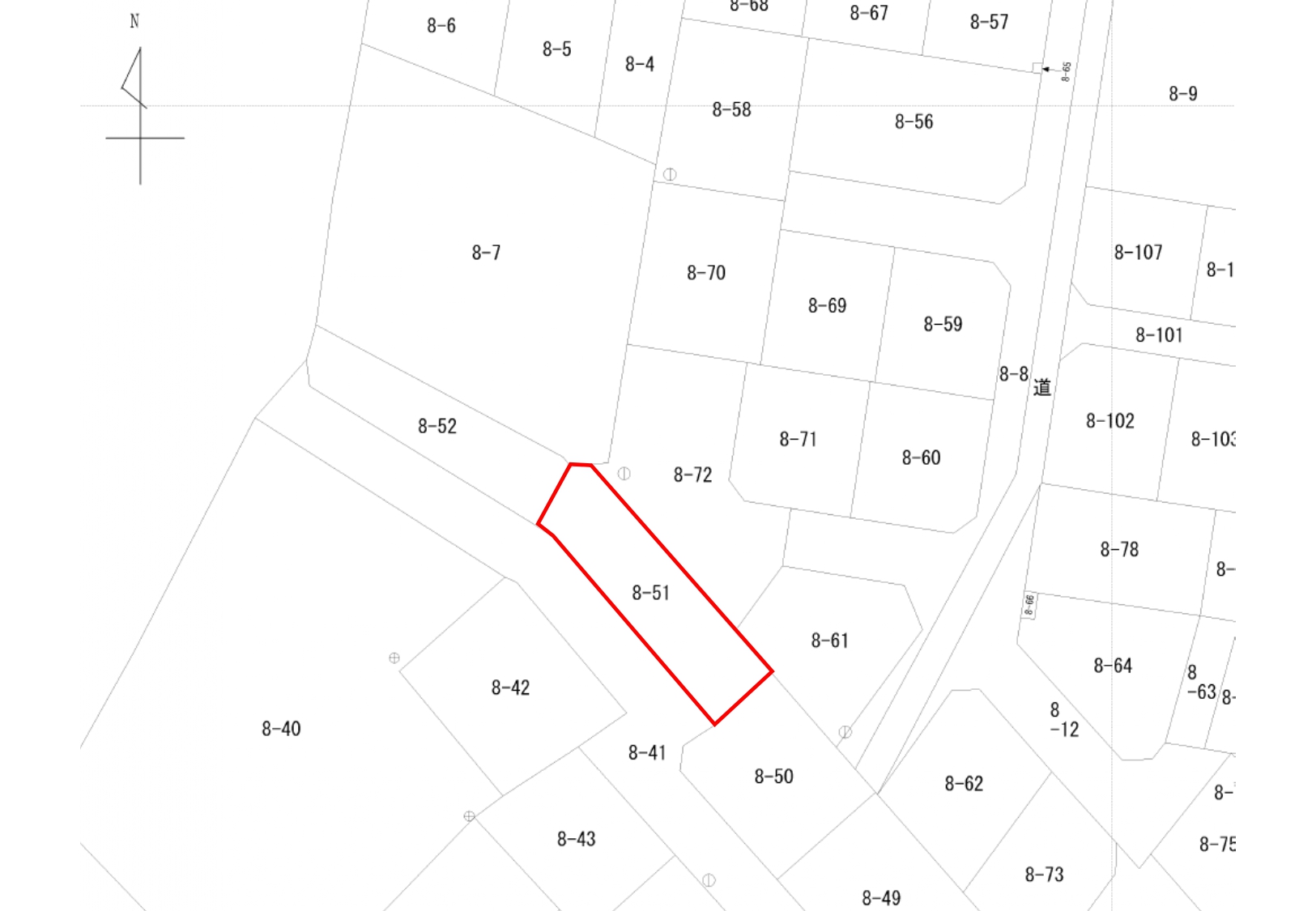 | 接道状況 | 南西側:幅員約6mの私道に約27.5m接道しています | ||