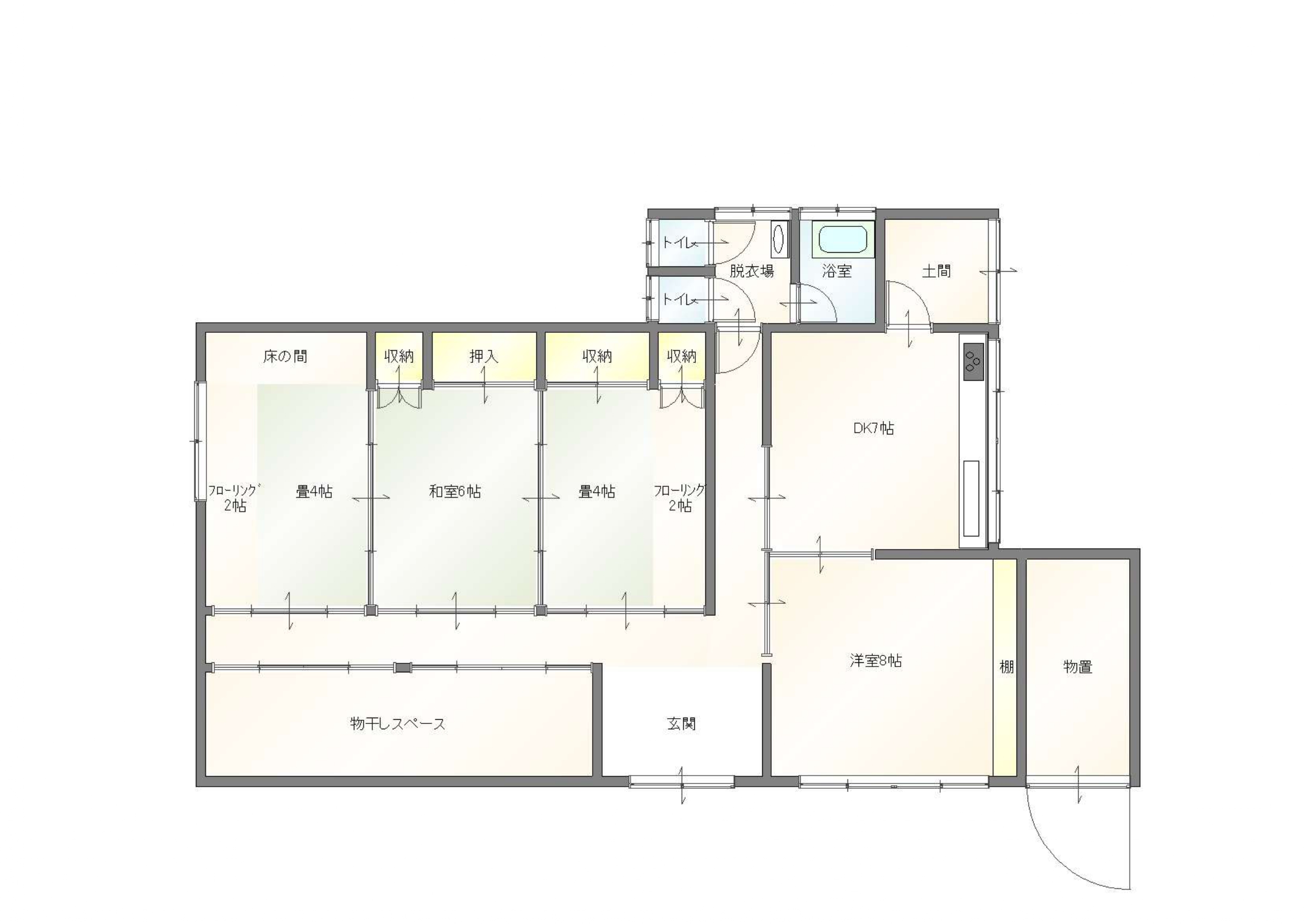 | 間取内訳 | 1F:DK7帖、洋室8帖、和室6帖、和室4帖×2 | ||