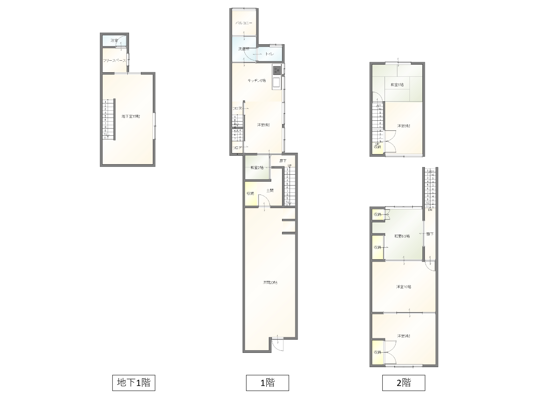 | 間取内訳 | 地階:15帖 1F:LDK12帖、洋室20帖 2F:洋室10帖、洋室9帖、和室6.5帖、和室6帖、洋室6帖、和室2帖 | ||