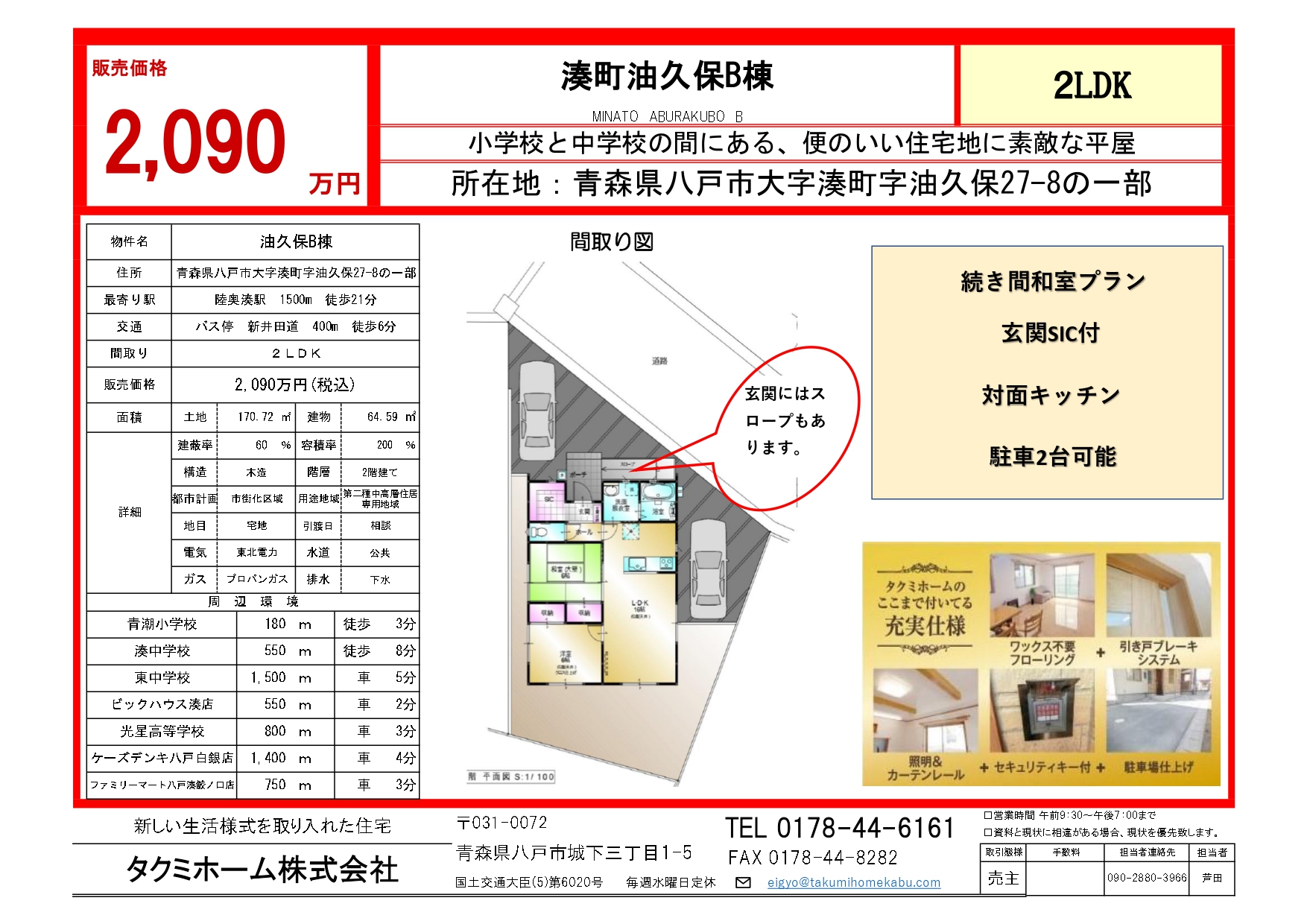 | 交通 | 八戸市営バス「新井田道」バス停から徒歩6分です | ||