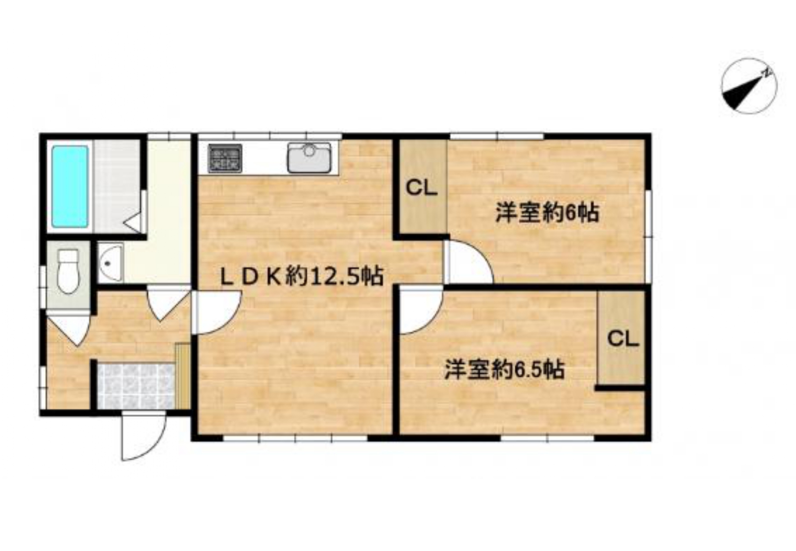 | 間取内訳 | 12.5帖LDK、6帖洋室、6.5帖洋室 | ||