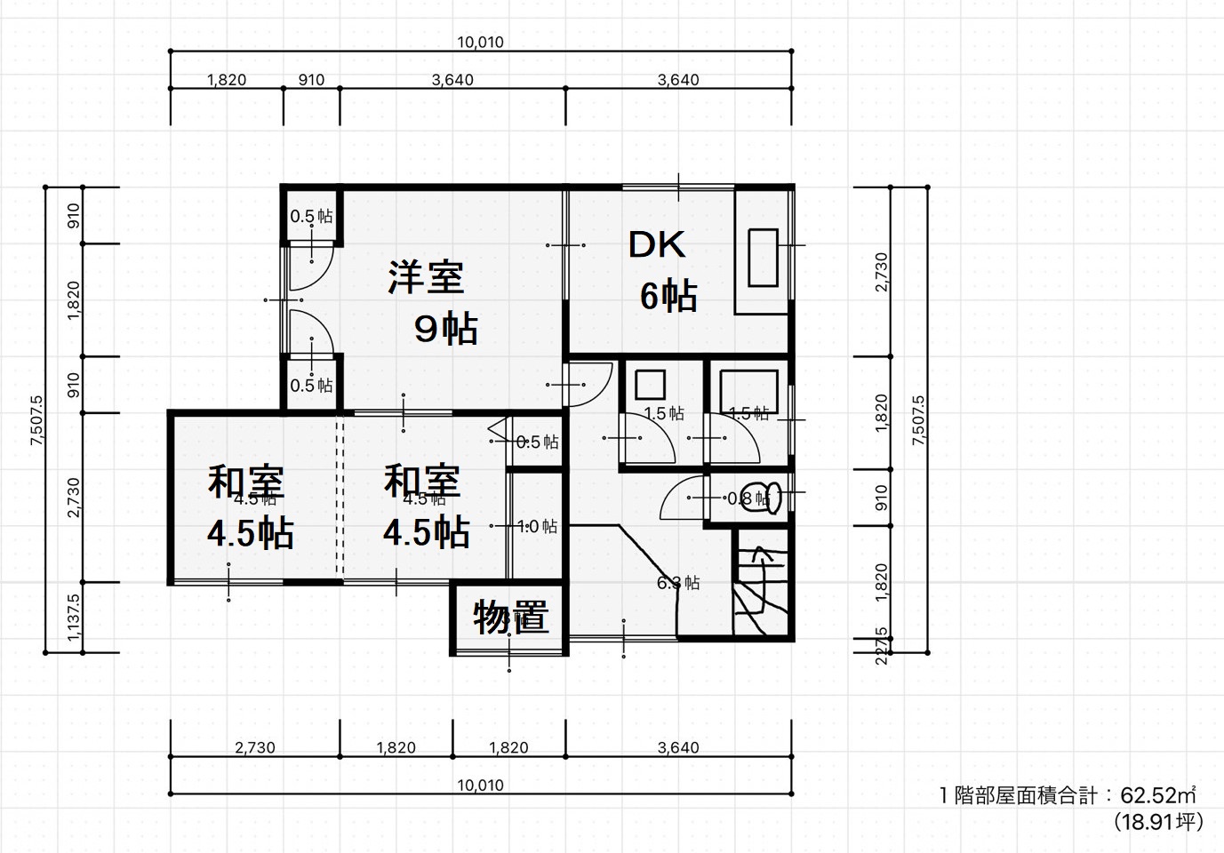 | 間取内訳 | 1F:DK6帖、洋室9帖、和室4.5×2 2F:和室1帖、和室7.5帖 | ||