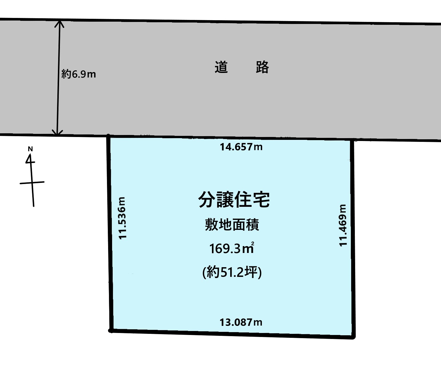 | 接道状況 | 北側:幅員6.9mの公道に約14.66m接道しています | ||