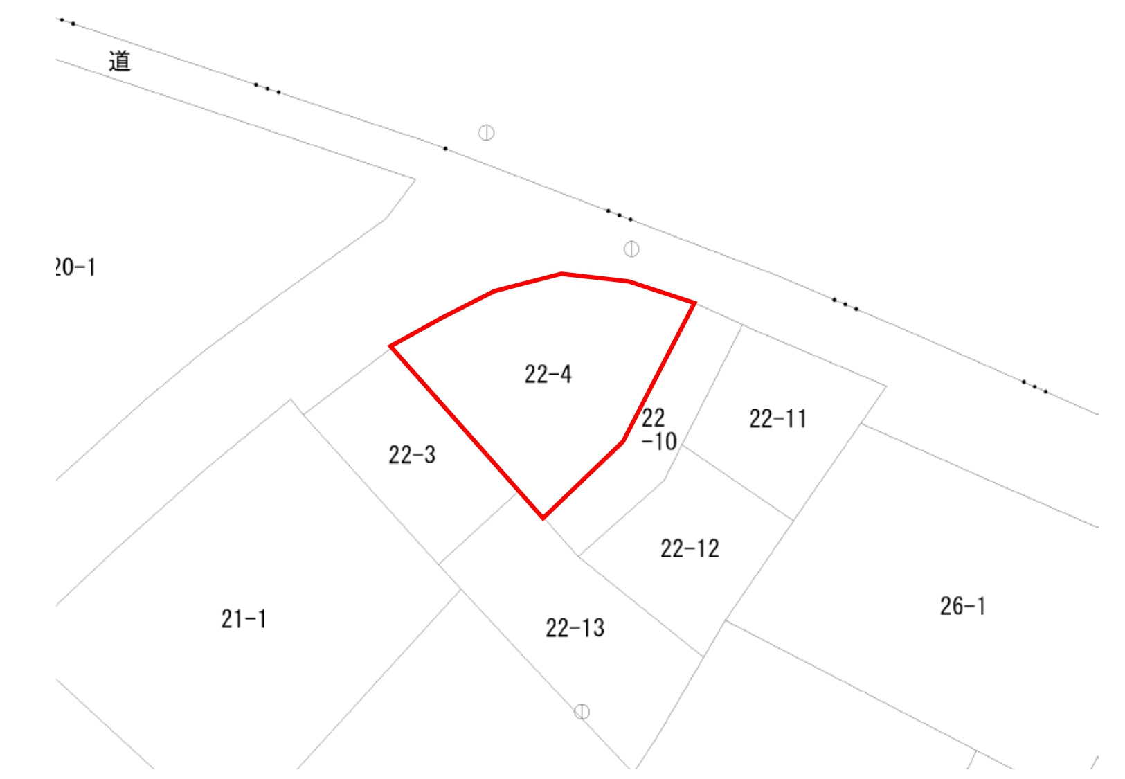 | 接道状況 | 北東から南東にかけてカーブした公道(県道)に約27m接道しています | ||