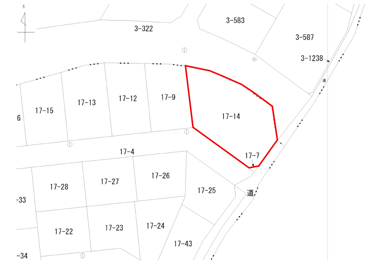 | 接道状況 | 北東側:幅員約10mの公道に約41.5m、南西側:幅員約6mの公道に約18.4m、南東側:幅員約5mの公道に約8.6m接道 | ||